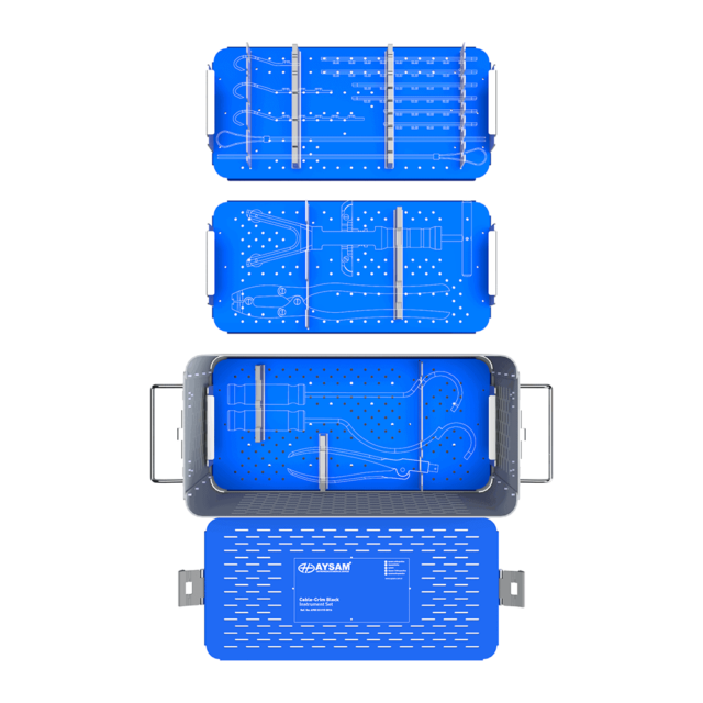 Набор инструментов для кабеля предназначен для имплантации, растяжения, фиксации и извлечения кабелей и обжимных блоков Aysam, используемых для фиксации костных фрагментов, перипротезных переломов. Состоит из кабелепровода, натяжителя кабеля, устройства для обжима кабеля, ножа для резки кабеля.