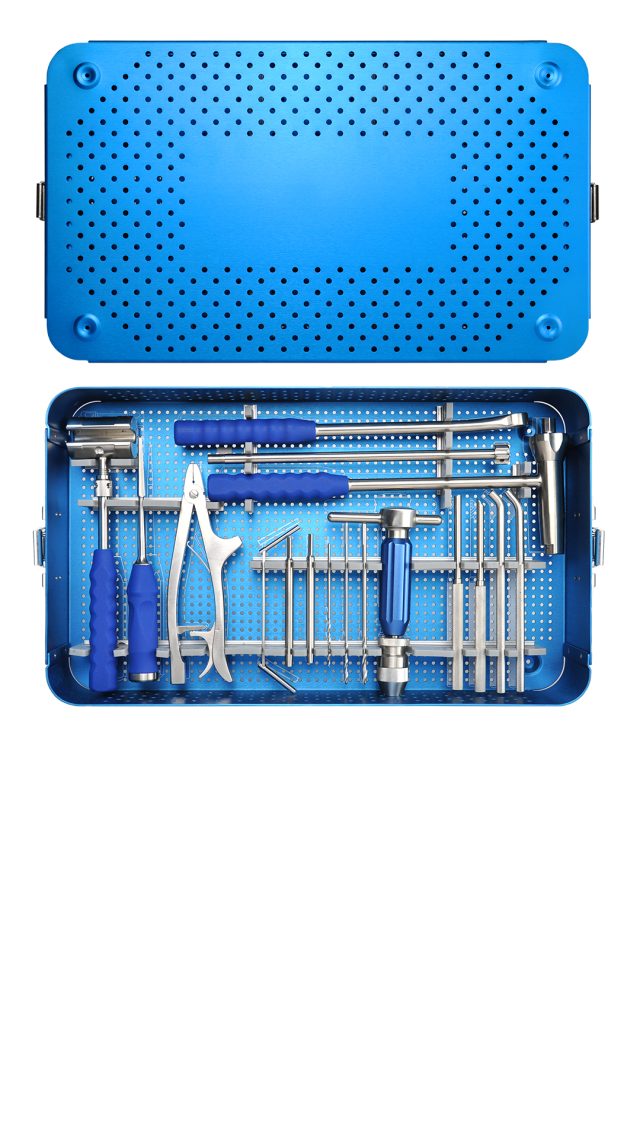 Набор инструментов для эластичных ногтей предназначен для имплантации и извлечения эластичных ногтей для лечения диафизарных и некоторых метафизарных переломов длинных костей.