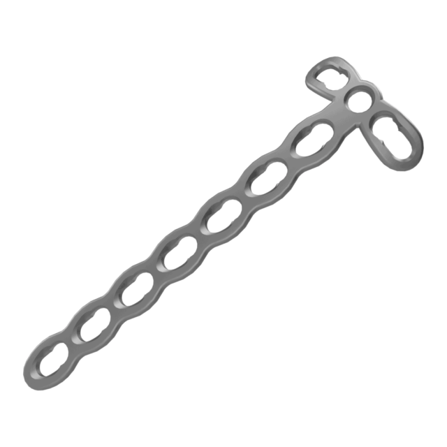 - صفيحة عظام صغيرة مقفلة على شكل حرف T خاصة بالجراحة العظمية (بثلاث تقوب على الرأس) 2,4مم