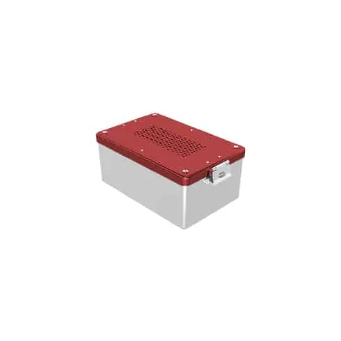 Los contenedores de esterilización de tamaño dental son cajas filtradas herméticas al aire y al agua que se utilizan para la esterilización de implantes dentales, instrumentos quirúrgicos y equipos. Consta de dos partes principales: recipiente y tapa. Los cuerpos principales de las cajas y las tapas se prensan en una sola pieza de aluminio de calidad 1050 y no se utilizan soldaduras durante la producción de las cajas y tapas. La anodización decorativa se realiza para aumentar la resistencia de la caja y cubrir las superficies contra factores externos. Hay opciones de color en las tapas. Hay orificios para el aire en la superficie de la tapa, un sello de silicona que proporciona un sello de aire y agua en el borde interior, un portafiltros de acero inoxidable / aluminio / plástico con cerradura con un sello de sellado alrededor, que mantiene los filtros colocados en la posición central en el interior de la tapa para filtrar el aire que pasa a través de los orificios de la tapa hacia la caja, cerraduras de resorte a ambos lados de cada lado de la caja están los compartimentos de fijación de etiquetas y las partes de la cerradura a través de las cuales se coloca el plástico desechable pases de bloqueo. Esteras de silicona, cestas de láminas, cestas de alambre, filtros de papel, filtros de PTFE y etiquetas se utilizan como materiales auxiliares junto con los contenedores. Se fabrican en varios tipos y tamaños que están prediseñados según las necesidades de los usuarios. Hay opciones para cajas con orificios y sin orificios y los filtros y portafiltros utilizados en la tapa se utilizan en las cajas con orificios