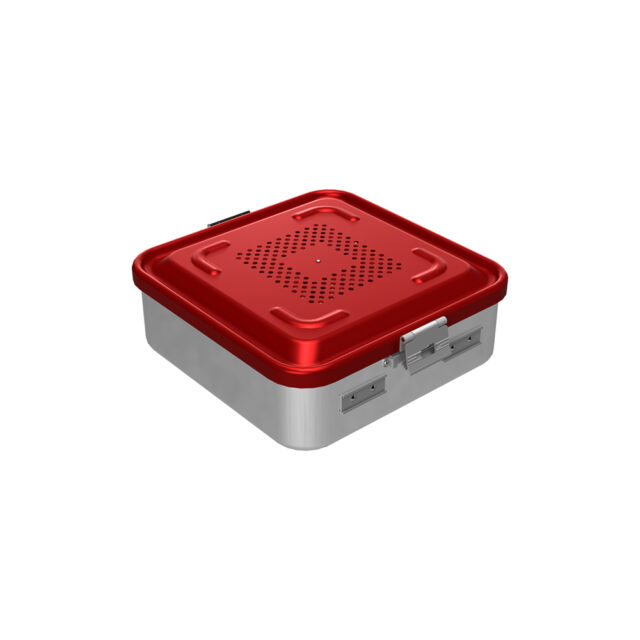 Los contenedores de esterilización de tamaño plano son cajas filtradas herméticas al aire y al agua que se utilizan para la esterilización de implantes, instrumentos microquirúrgicos, cepillos y esterilización de equipos. Los cuerpos principales de las cajas y las tapas se prensan en una sola pieza de aluminio de calidad 1050 y no se utilizan soldaduras durante la producción de las cajas y tapas. La anodización decorativa se realiza para aumentar la resistencia de la caja y cubrir las superficies contra factores externos. Hay opciones de color en las tapas. Hay orificios para el aire en la superficie de la tapa, un sello de silicona que proporciona un sello de aire y agua en el borde interior, un portafiltros de acero inoxidable / aluminio / plástico con cerradura con un sello de sellado alrededor, que mantiene los filtros colocados en la posición central en el interior de la tapa para filtrar el aire que pasa a través de los orificios de la tapa hacia la caja, cerraduras de resorte a ambos lados de cada lado de la caja están los compartimentos de fijación de etiquetas y las partes de la cerradura a través de las cuales el plástico desechable pases de bloqueo. Esteras de silicona, cestas de láminas, cestas de alambre, filtros de papel, filtros de PTFE y etiquetas se utilizan como materiales auxiliares junto con los contenedores. Se fabrican en varios tipos y tamaños que están prediseñados según las necesidades de los usuarios. Hay opciones para cajas con orificios y sin orificios y los filtros y portafiltros utilizados en la tapa se utilizan en las cajas con orificios
